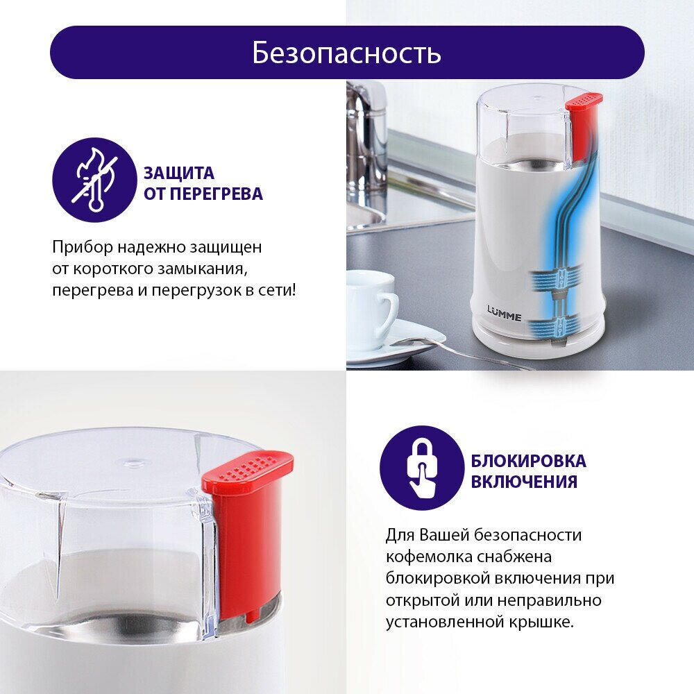 Кофемолка электрическая LUMME LU-2605 / 250 Вт / синий сапфир
