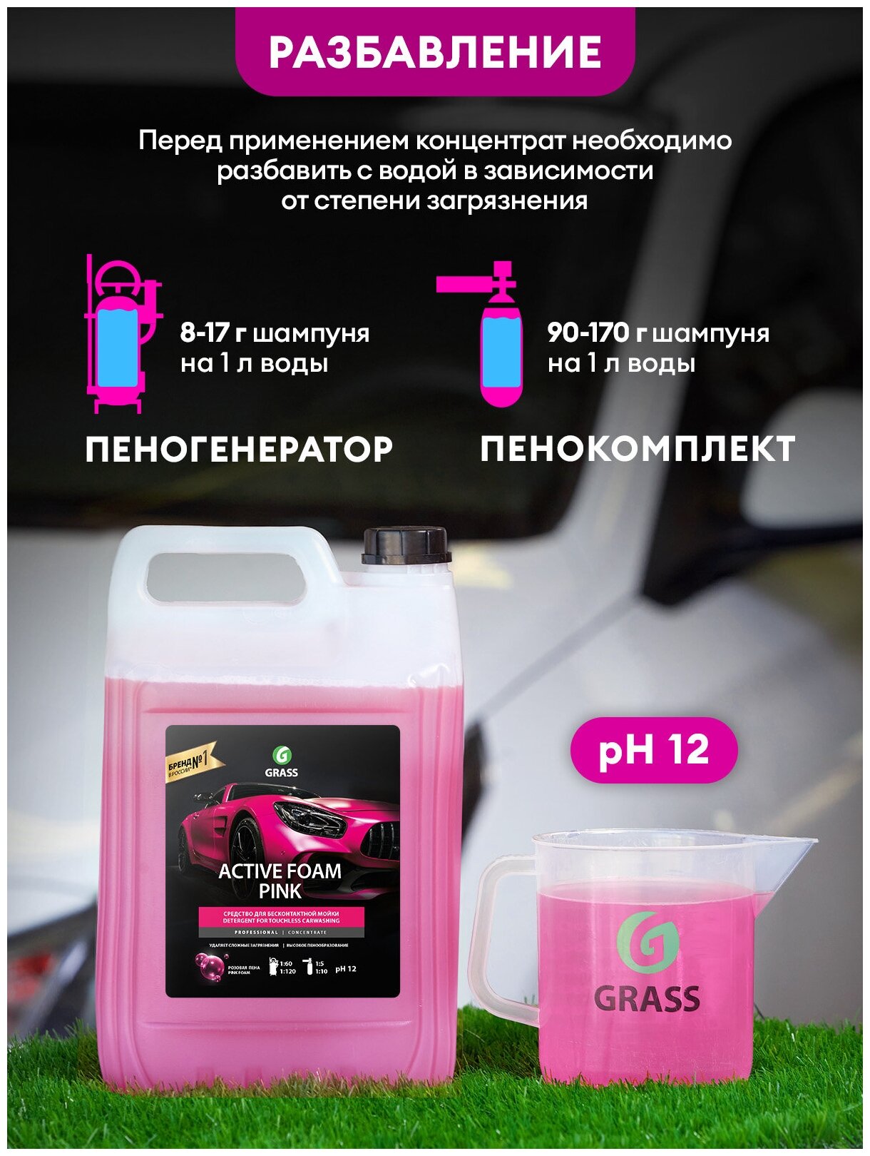 Лучшие цены. Цветной автошампунь Active Foam Pink, активная пена Grass для бесконтактной мойки автомобиля, профессиональная автохимия для ухода за авто, канистра 6 кг. Активная пена для бесконтактной мойки Грасс пинк, борется с грязью, следами от масла (антижир) и насекомых, подходит для очистки дисков, стекол, пластика и металла. Автохимия для автомобиля замедляет коррозию на кузове авто и предотвращает ржавчину. Магазины в вашем городе.