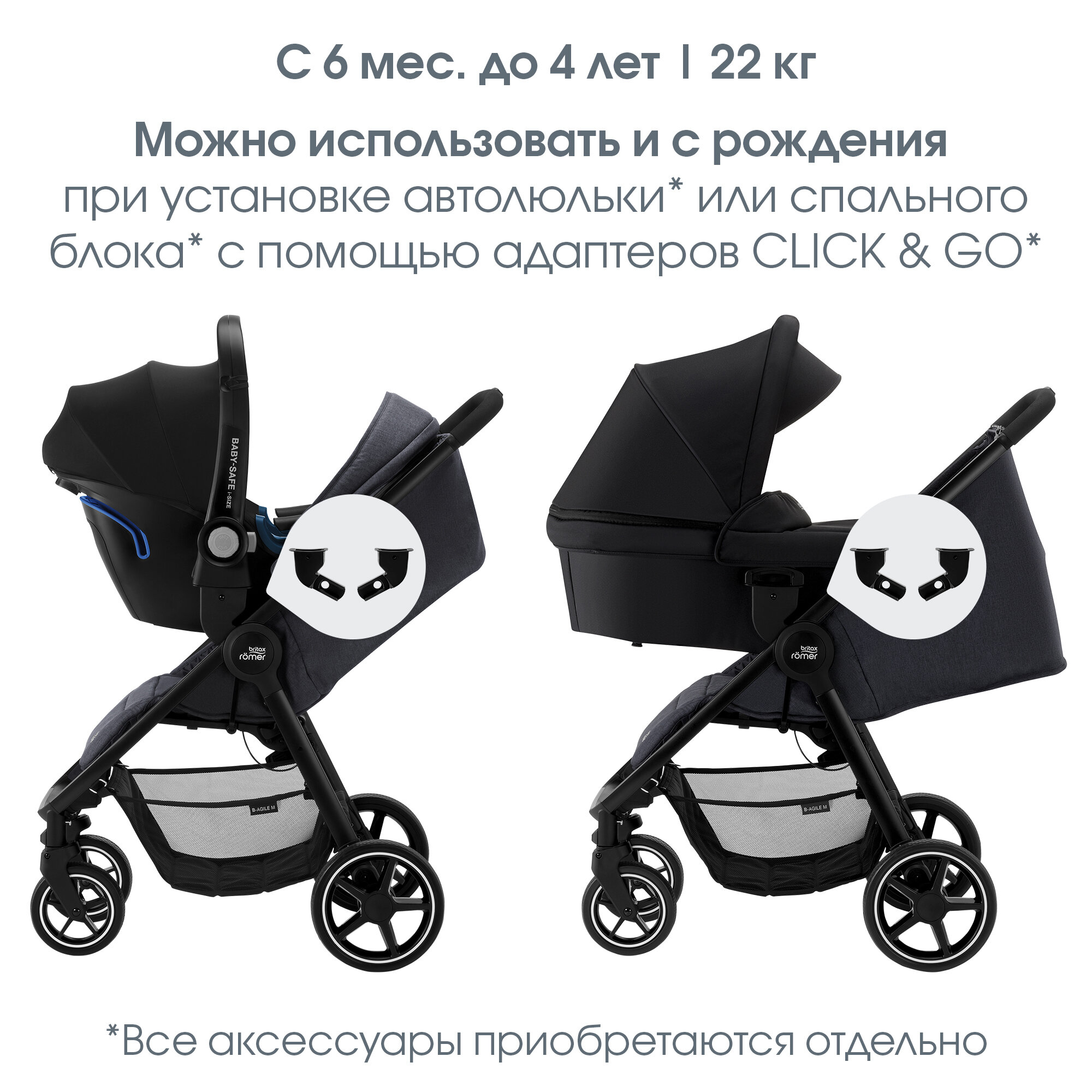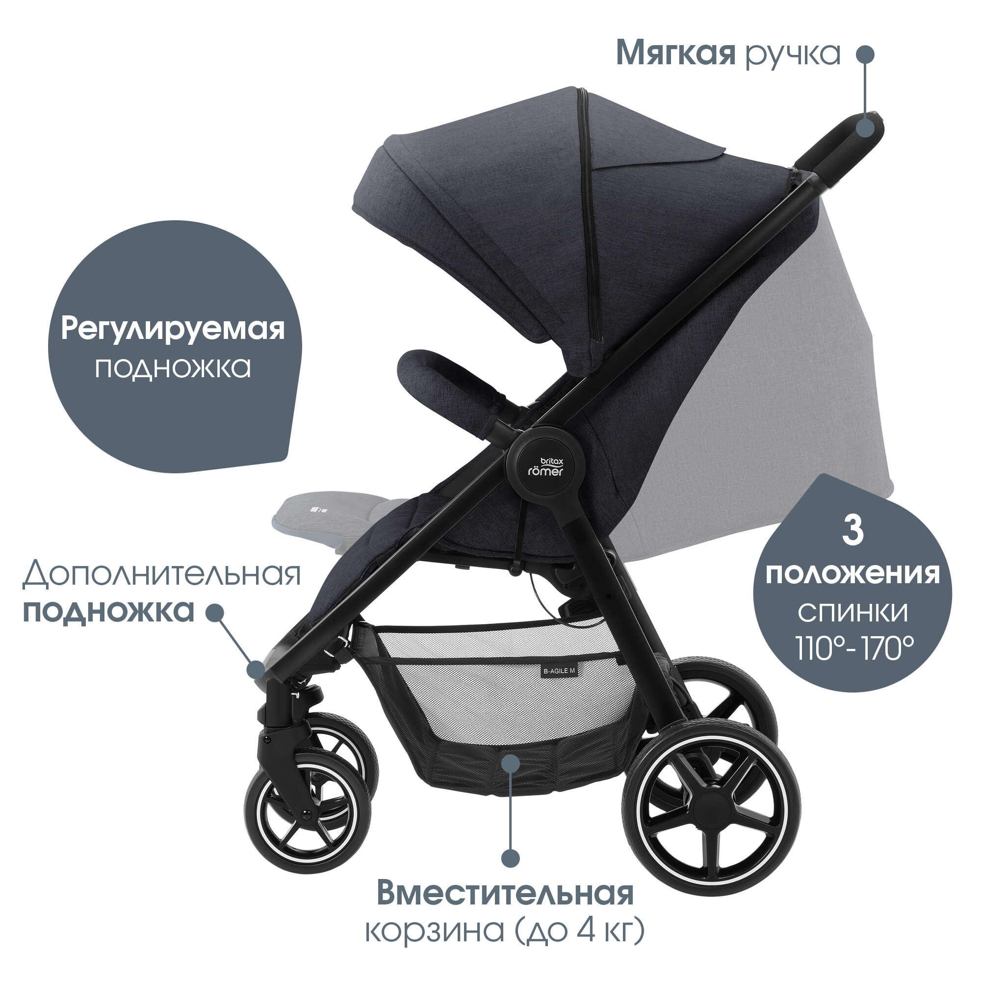 Прогулочная коляска Britax Romer B-Agile M Black Shadow, детская, темно серая, универсальная, всесезонная, для путешествий, для детей от 6 месяцев