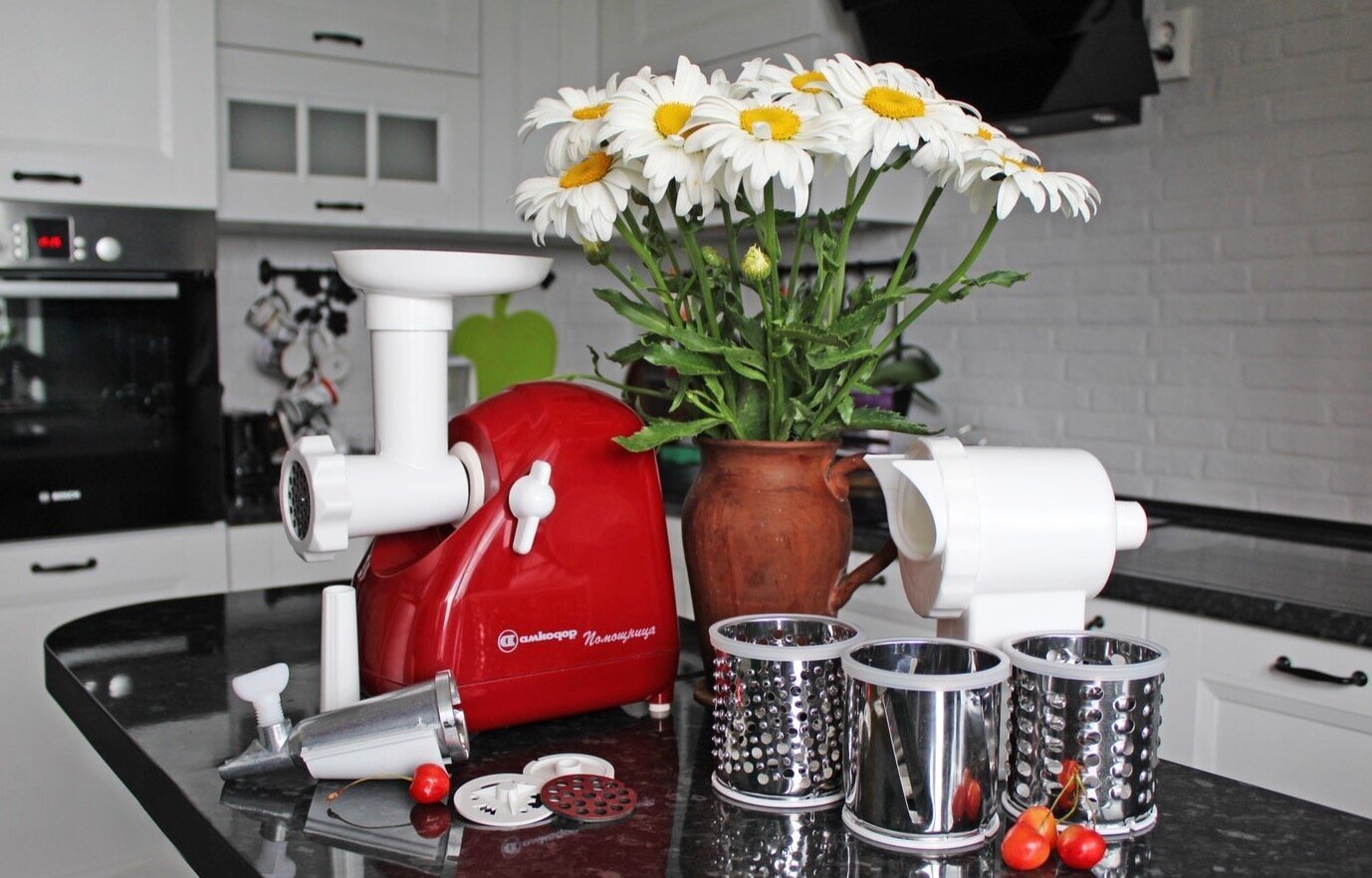 Мясорубка Белвар Помощница КЭМ-П2У 302-09, белый, макс. мощность 1500 Вт, реверс, шинковка, соковыжималка для мягких ягод и томатов,.насадка для теста, колбас