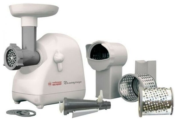 Мясорубка Белвар Помощница КЭМ-П2У 302-09, белый, макс. мощность 1500 Вт, реверс, шинковка, соковыжималка для мягких ягод и томатов,.насадка для теста, колбас