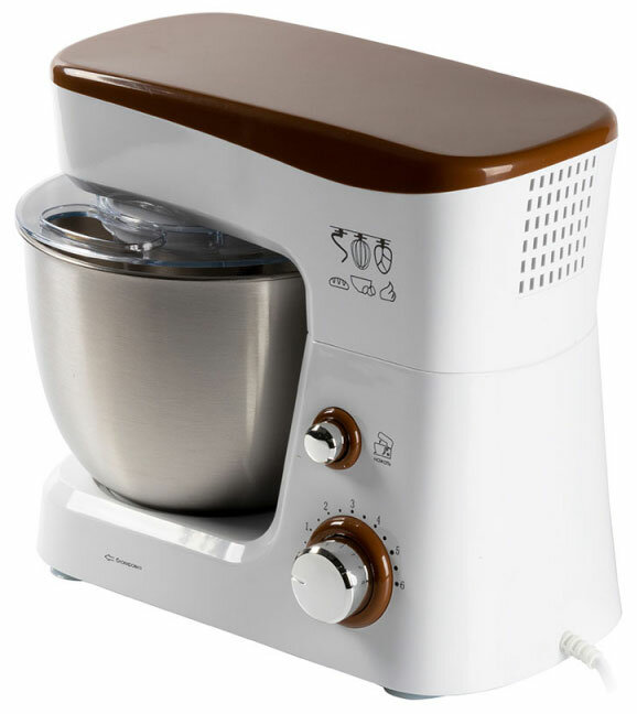 Лучшие цены. Характеристики: Мощность (Вт): 1000 Объем (л): 3.5 Номинальное напряжение (В): 220 В, 50 Гц Цвет: белый/коричневый Особенности и дополнительные функции: Планетарная система смешивания Вместительная стальная чаша 3,5 л Откидывающаяся верхняя консоль для снятия чаши Плавная регулировка скорости Прозрачная крышка чаши с отверстием для добавления продуктов Комплект поставки: Планетарный миксер Съемная чаша с крышкой Насадка для перемешивания Крюк для теста Венчик для взбивания Лопатка кулинарная Гарантийный. Магазины в вашем городе.