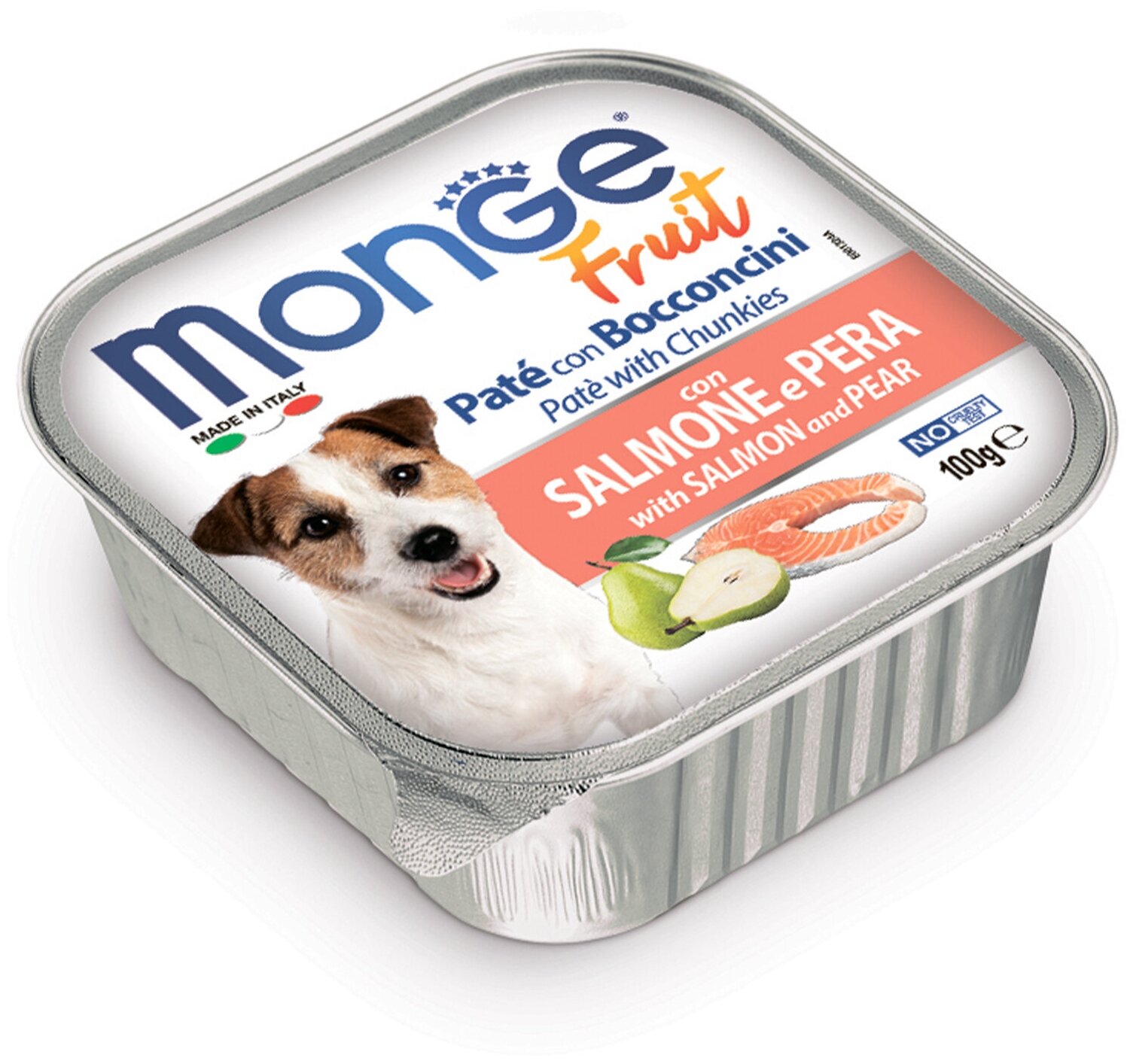 Влажный корм для собак Monge Fruit Dog PATE & BOCCONCINI con SALMONE e PERA, лосось с грушей, 100 г