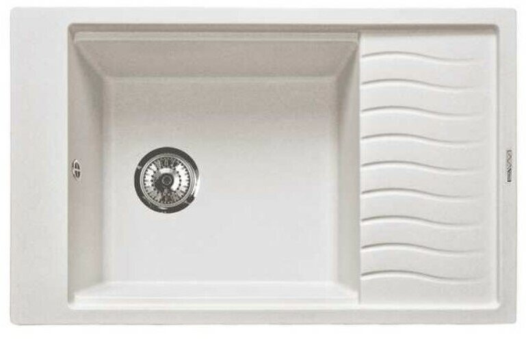 Лучшие цены. Оригинальный дизайн мойки подходит как в кухни современного стиля , так и классического. \nБольшая чаша. \nПлощадка под смеситель находится сбоку, данная конструкция позволяет установить мойку под окно. \nХарактеристики: \nразмер мойки 780х500 мм \nразмер чаши 450х410 мм \nглубина чаши 190 мм \nвырез под мойку 760х480 мм \nустановка сверху \nдва намеченных отверстия \nсливная арматура и сифон в комплекте \nмойка оборачиваемая. Магазины в вашем городе.
