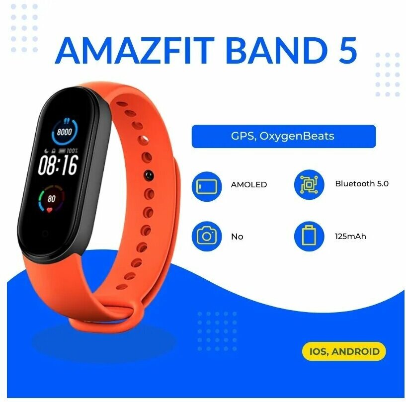 Смарт часы и фитнес браслеты Умный браслет Amazfit Band 5, оранжевый