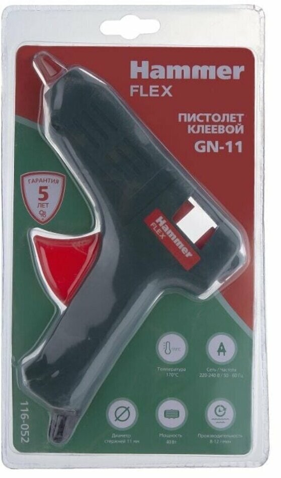 Клеевой пистолет Hammer Flex GN-11 40 Вт 8-12 г/мин, стержни 11 мм