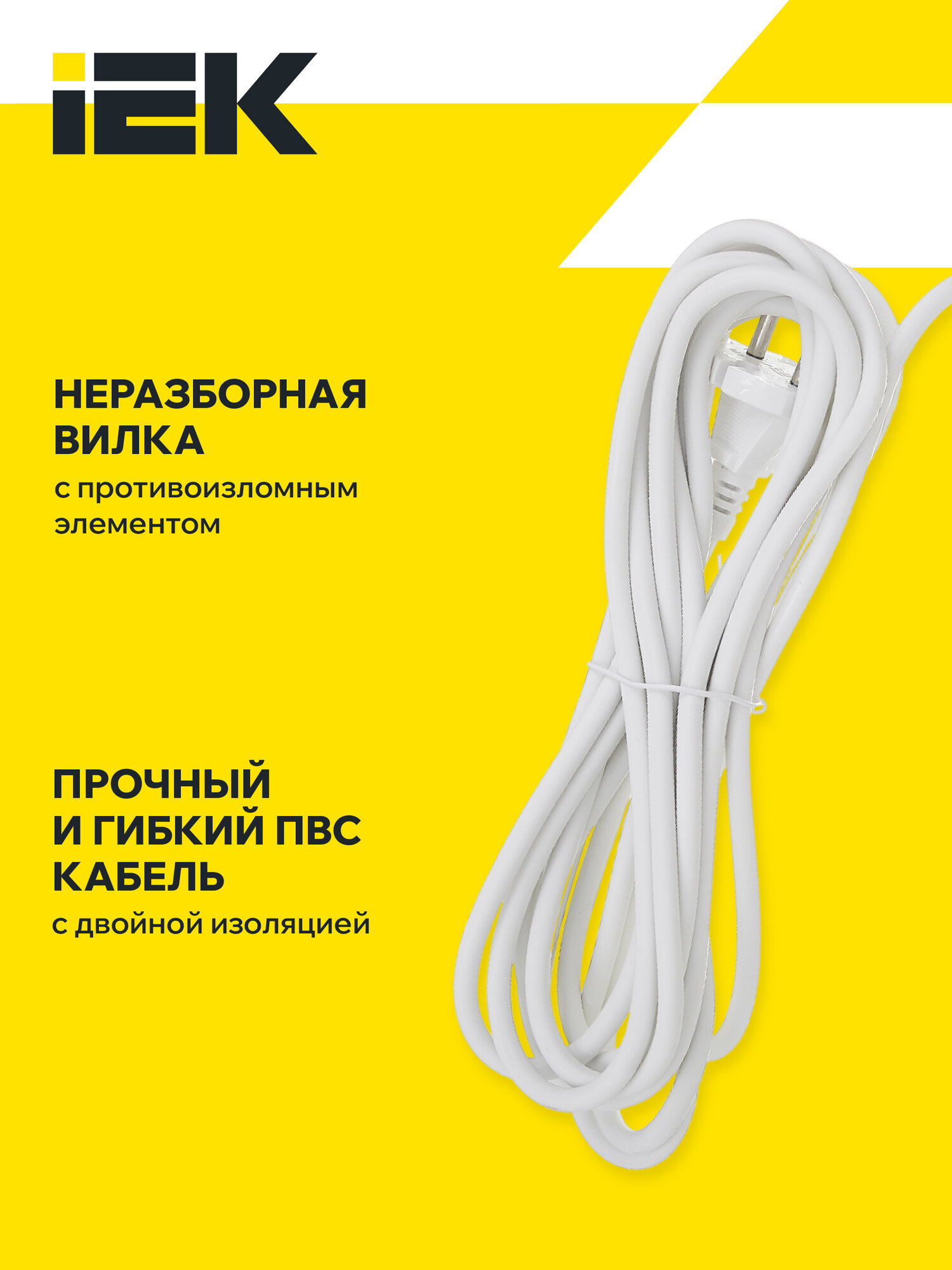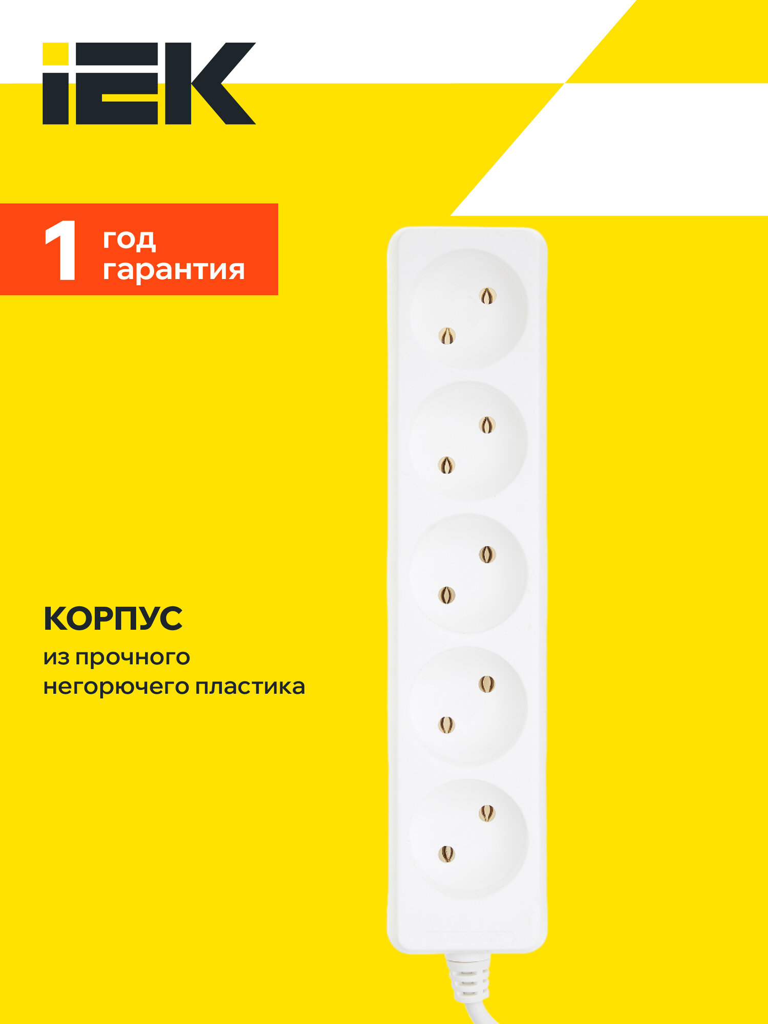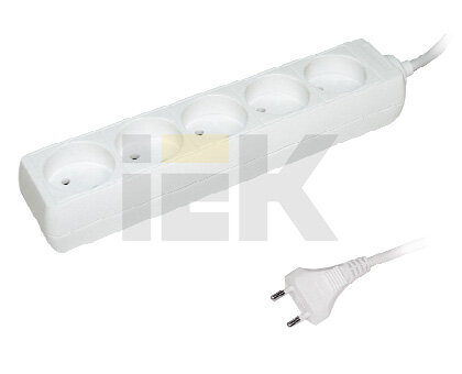 Удлинитель IEK WYP10-06-05-05-N, 5 розеток, 5 м, б/з, 10А / 2000 Вт белый