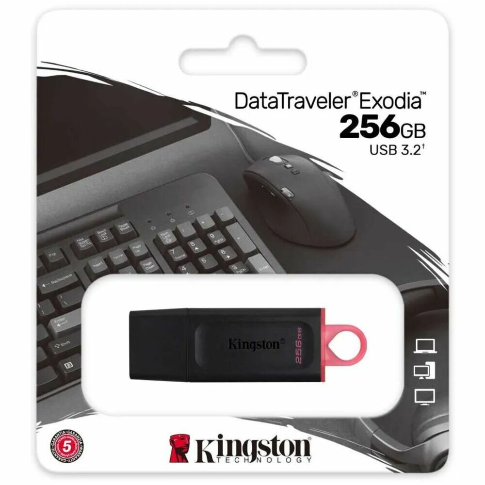 Лучшие цены. Память USB Flash Kingston DataTraveler Exodia благодаря объему 256 ГБ позволяет надежно хранить достаточно большой массив информации и быстро обмениваться данными при необходимости. Используемый в устройстве интерфейсный разъем USB версии 3.2 Gen 1 гарантирует быстродействие и широкую совместимость с ПК, телевизорами и другими устройствами с соответствующим портом. Магазины в вашем городе.