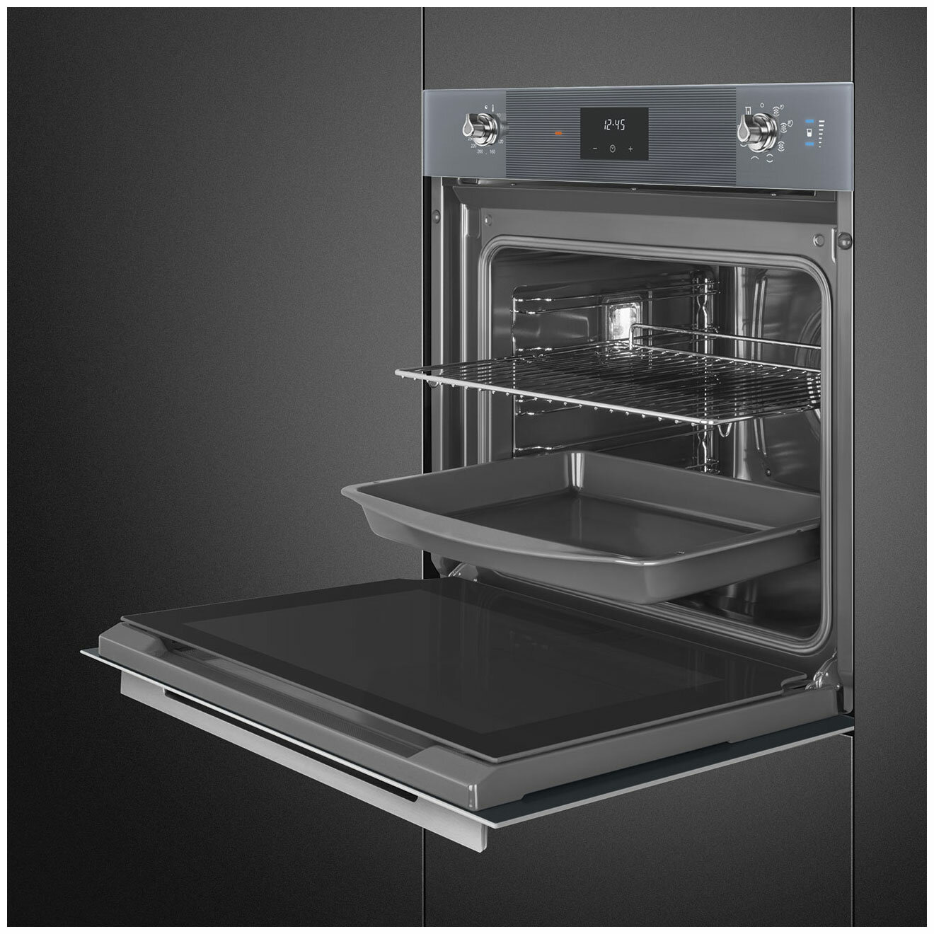 Встраиваемая электрическая духовка SMEG/ Linea, Многофункциональный духовой шкаф с пароувлажнением, 60 см, 6 функций, серебристое стекло Stopsol