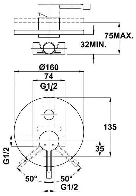 Лучшие цены. Однорычажный смеситель для ванны/душа скрытого монтажа. Картридж 40 мм. С переключателем на 2 вывода воды. В комплекте с внутренним механизмом. Подключение 1/2. Хром. Магазины в вашем городе.