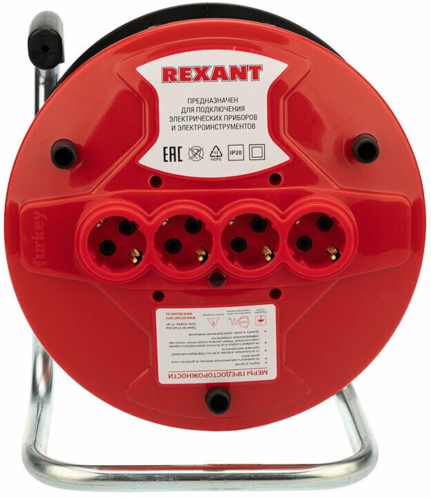 Сетевые фильтры и удлинители Удлинитель-шнур на катушке REXANT ПВС 3х1.0, 20 м, 4 гнезда, с/з, 10 А, 2200 Вт, IP20, оранжевый (Сд