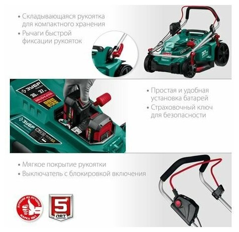 ЗУБР 36В бесщеточная газонокосилка, 2х18В АКБ (4Ач). ГКЛ-3736-42
