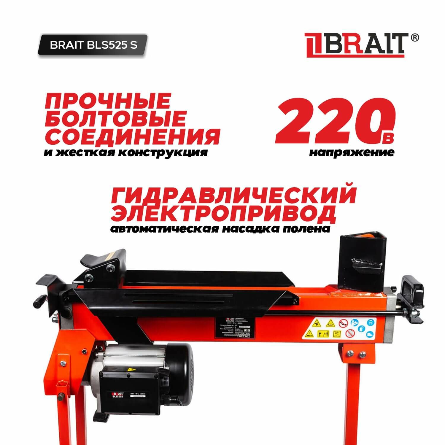 Дровокол BRAIT BLS525S (2200Вт, 220В, 50Гц, 5т, длина бревна 52см, диаметр бревна 25см со стойкой)