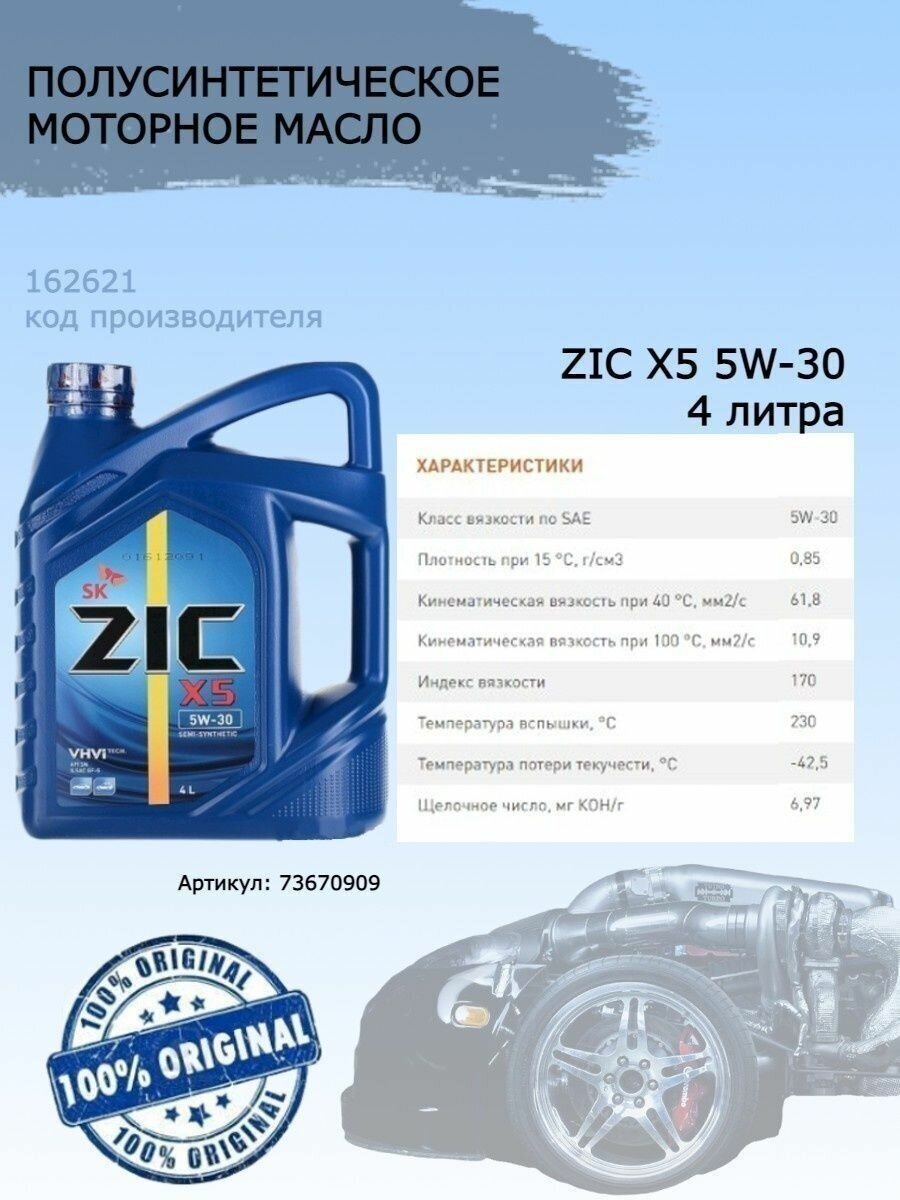 Лучшие цены. ZIC X5 5W-30 - это современное моторное масло, предназначенное для использования в качестве смазочного материала в бензиновых моторах легковых авто. Масло пришло на смену привычному нам ZIC A 5W30. В составе масла ZIC X5 5W-30 содержится специальный пакет присадок, который делает продукт действительно качественным по сравнению с остальными конкурентами. При производстве продукта используются высококачественные полусинтетические базовые масла YUBASE, являющиеся собственной разработкой компании SK Lubrikans. Магазины в вашем городе.