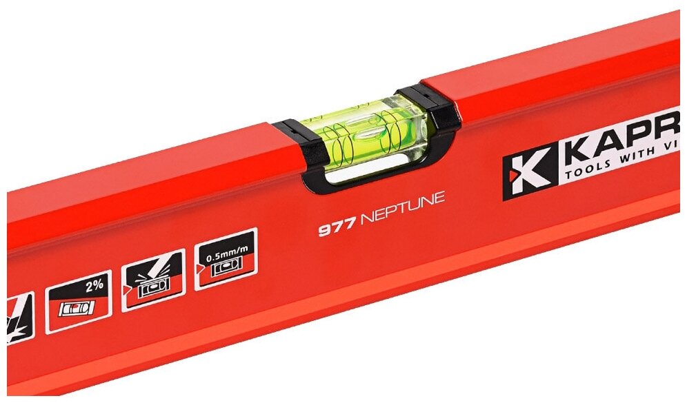 Лучшие цены. Магнитный уровень KAPRO NEPTUNE 977-40-60М- это высококачественный профессиональный измерительный прибор с встроенными магнитами, который позволяет обнаружить отклонение поверхности от горизонтали или вертикали. Длина инструмента- 60 см. 2 прочные полиакриловые колбы с фиксацией на эпоксидный клей Измерение уклонов величиной 2% Фрезерованная рабочая поверхность Лёгкий прочный алюминиевый корпус с увеличенными рёбрами жёсткости Амортизирующие резиновые торцевые заглушки Противоскользящие выносные элементы. Магазины в вашем городе.