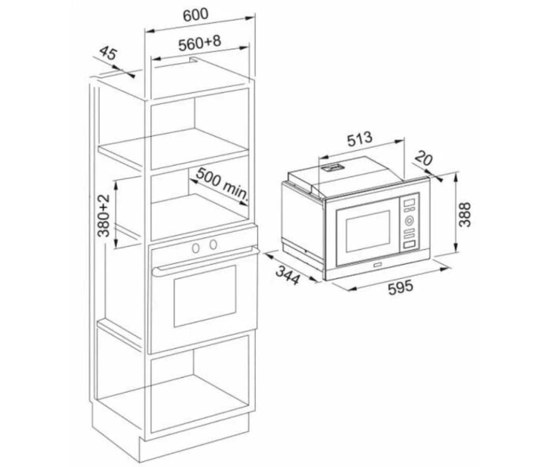 | Размеры для встраивания (ВхШхГ) | 380x560x500 мм |