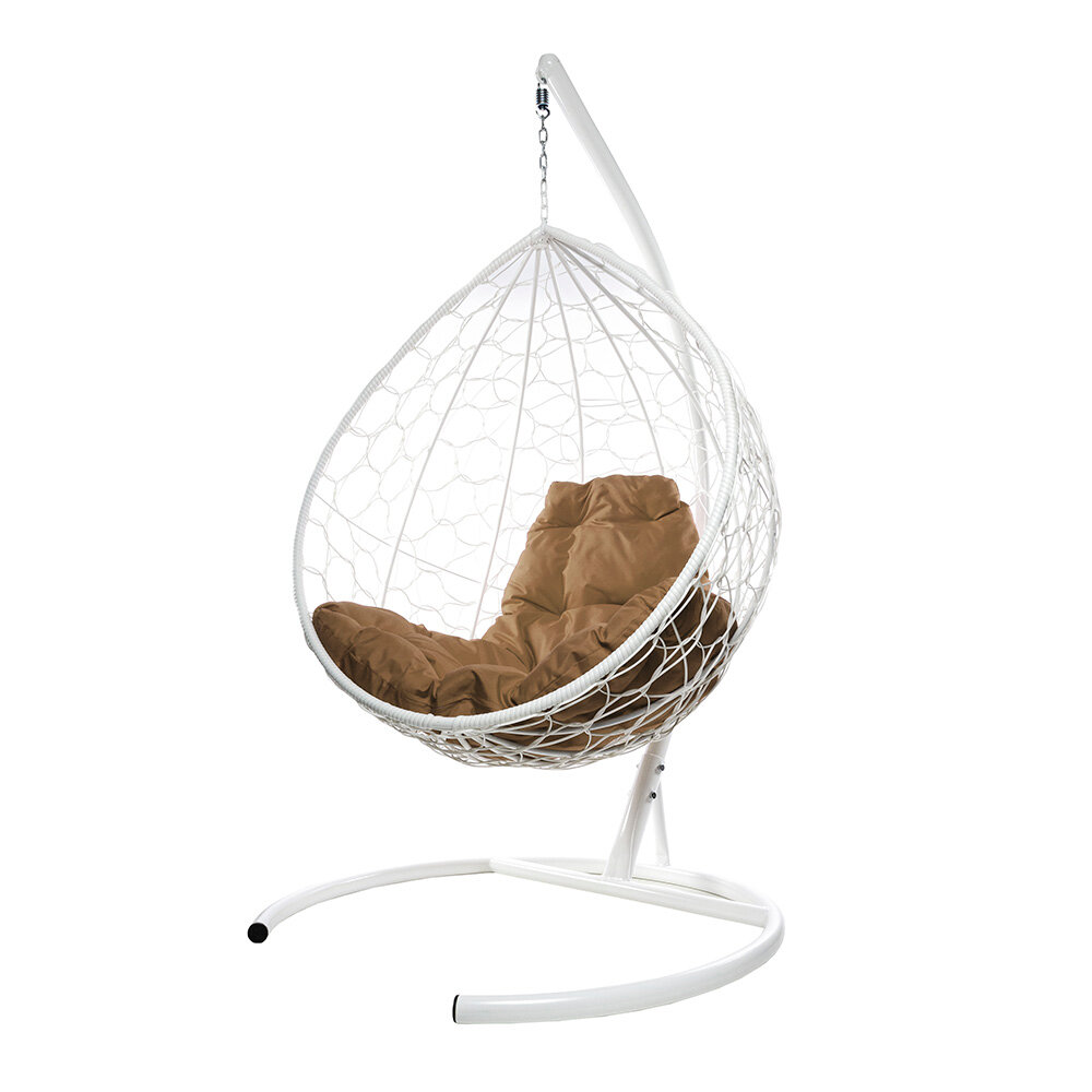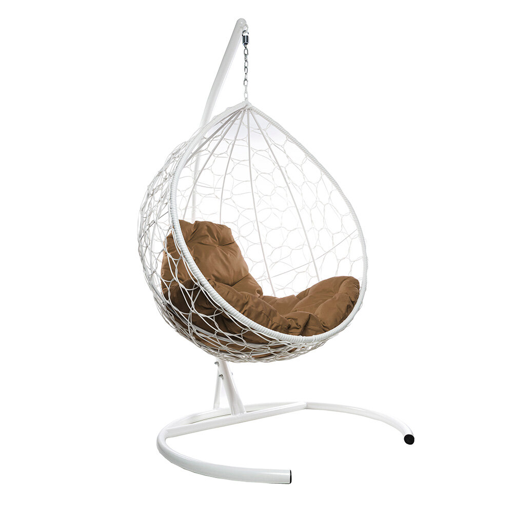 Подвесное кресло капля ротанг белое (без стойки), коричневая подушка