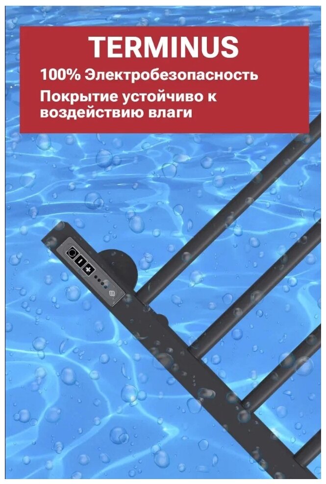 Лучшие цены. Полотенцесушитель электрический Terminus Аврора КС 9005 П6, 119 Вт, 450 x 600 мм, матовый черный. Магазины в вашем городе.