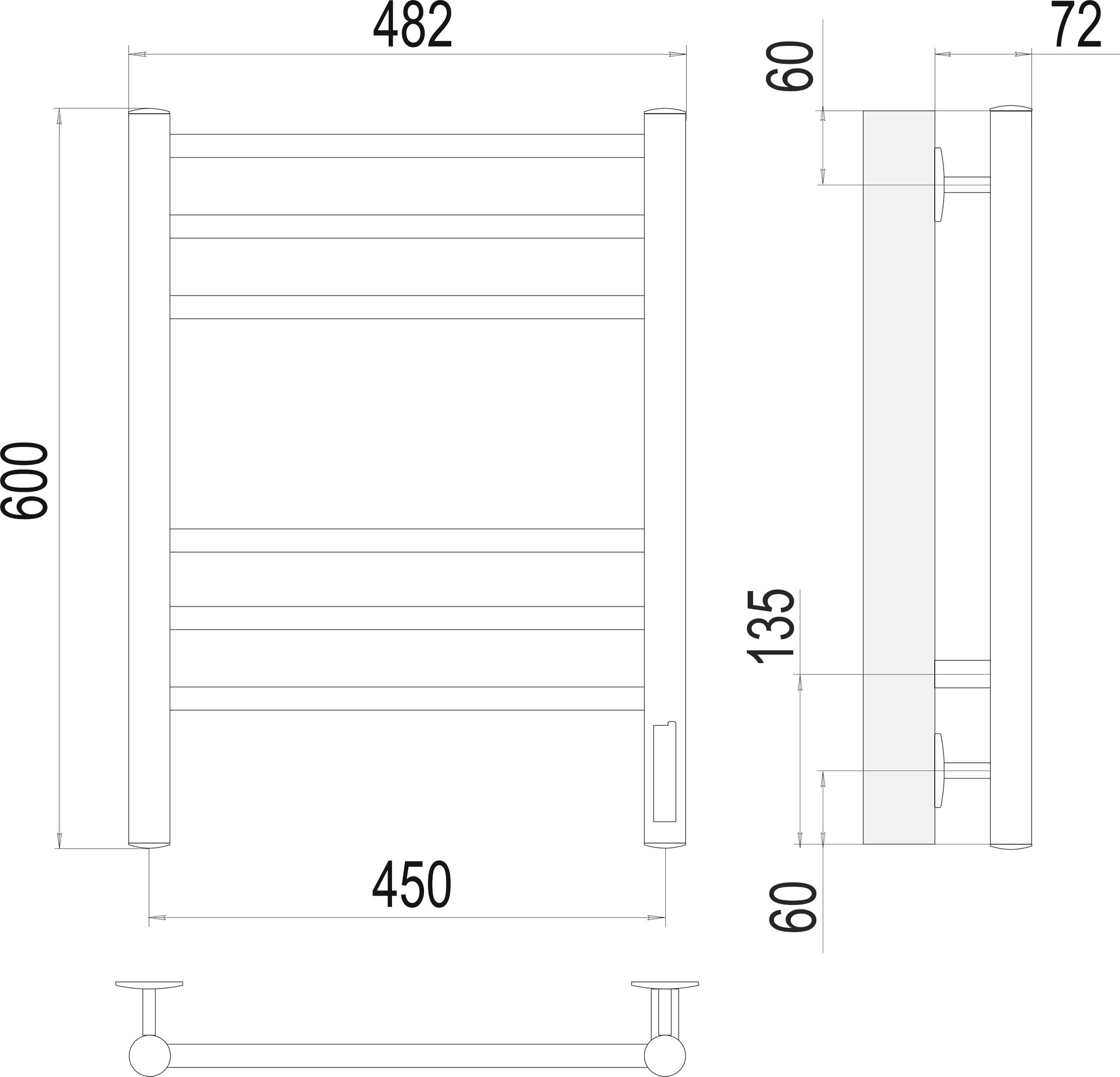 КС Аврора quick touch (черный) электрический полотенцесушитель TERMINUS (482 мм / 600 мм / 450 мм)