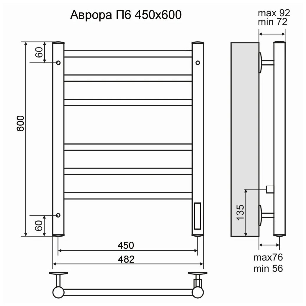 Аврора П6 450х600 электро КС 9003 матовый Полотенцесушитель Terminus