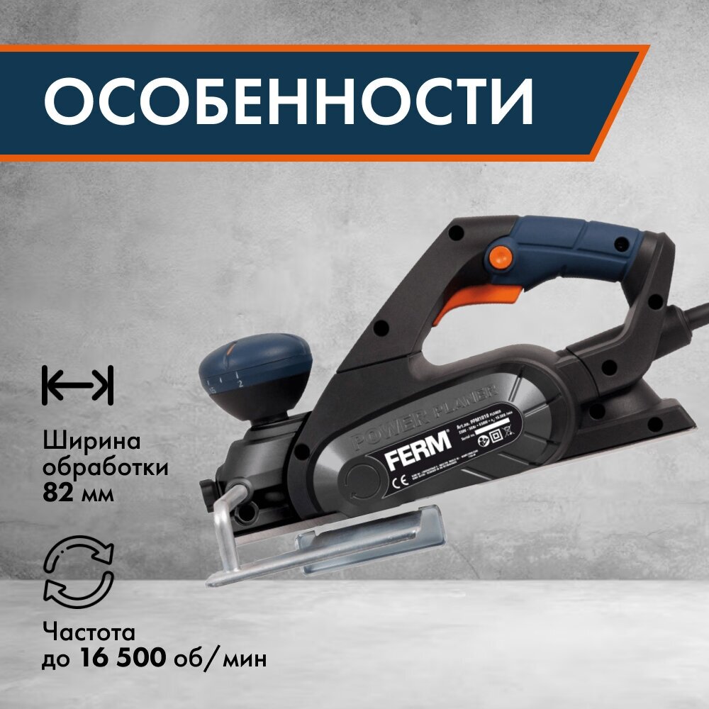 Электрорубанки Электрорубанок FERM PPM1010, 650 Вт., 82 мм., 16500 об.мин., коробка