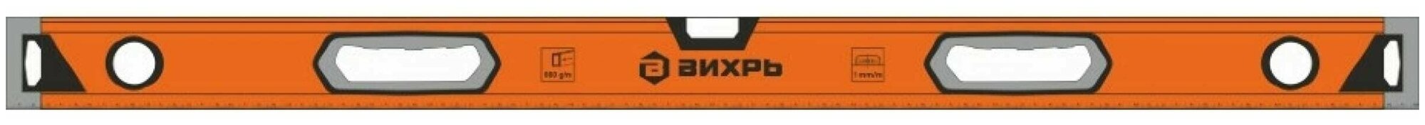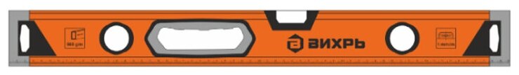 Уровень алюминиевый Вихрь усиленный 1000 мм, 3 глазка (1 зеркальный), 2 компонентная рукоятка 73/11/4/12