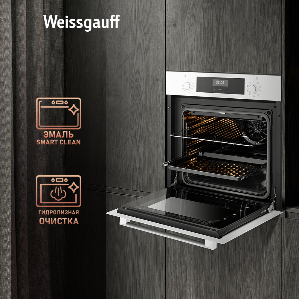 Электрический духовой шкаф Weissgauff EOV 291 PDW, 9 функций, конвекция, гриль, 60 см, 3 года гарантии, Эмаль SMART CLEAN, утапливаемые рукоятки PIPO, Класс энергопотребления А 31 400 ₽ Подробнее