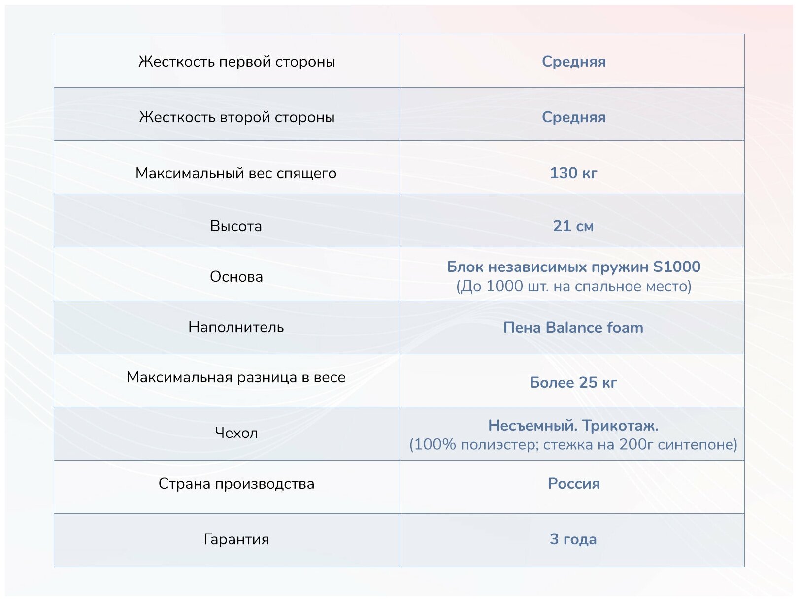 Лучшие цены. Этот ортопедический матрас создан для больших нагрузок и имеет среднюю жесткость сторон. Базируется на усиленном блоке независимых пружин S1000. Каждая пружина индивидуально подстраивается под контур тела человека и оказывает точечную поддержку. Конструкция выдерживает нагрузку до 130 кг на спальное место. С двух сторон от основы расположена ортопедическая пена balance foam. Этот современный материал по своим свойствам напоминает натуральный латекс. Магазины в вашем городе.
