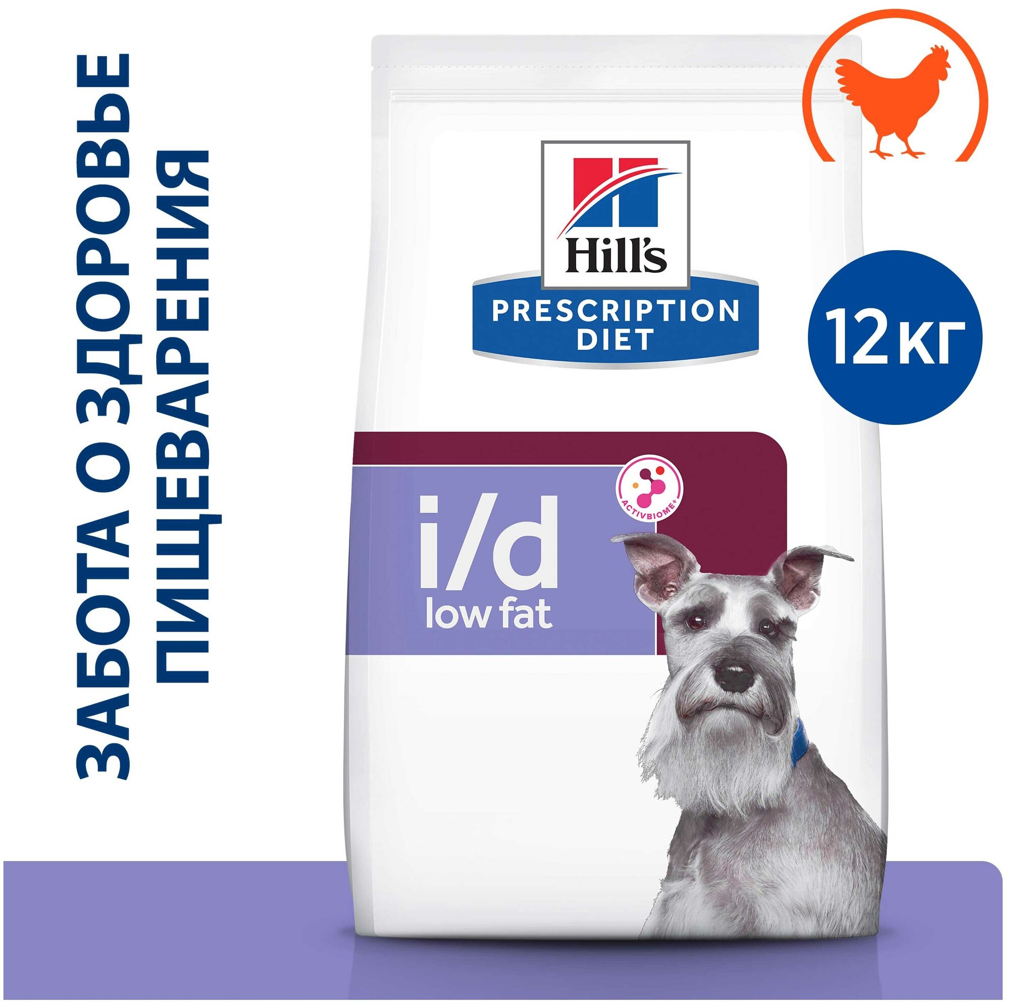 Hill's Prescription Diet i/d Low Fat Digestive Care при расстройствах пищеварения с низким содержанием жира, с курицей, 12 кг