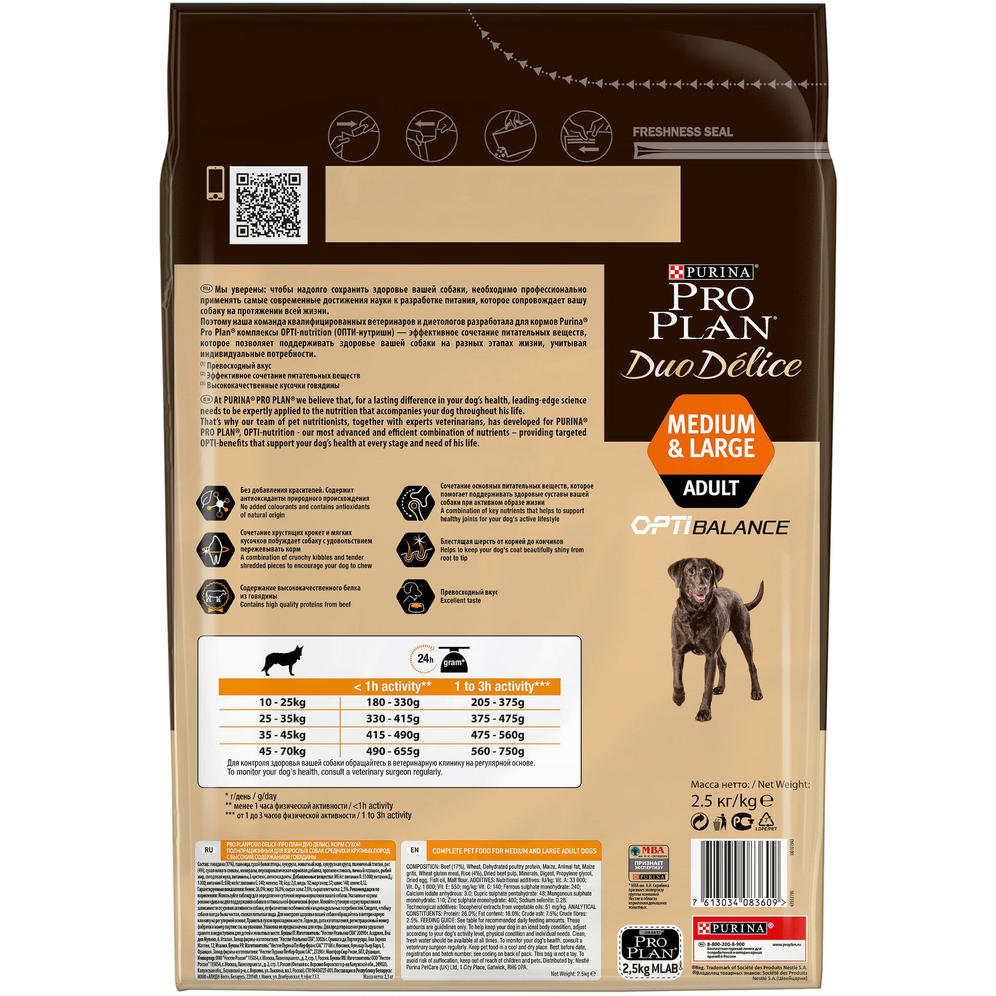 Сухой корм Pro Plan Duo Delice для взрослых собак средних и крупных пород, с высоким содержанием говядины, Пакет, 2,5 кг