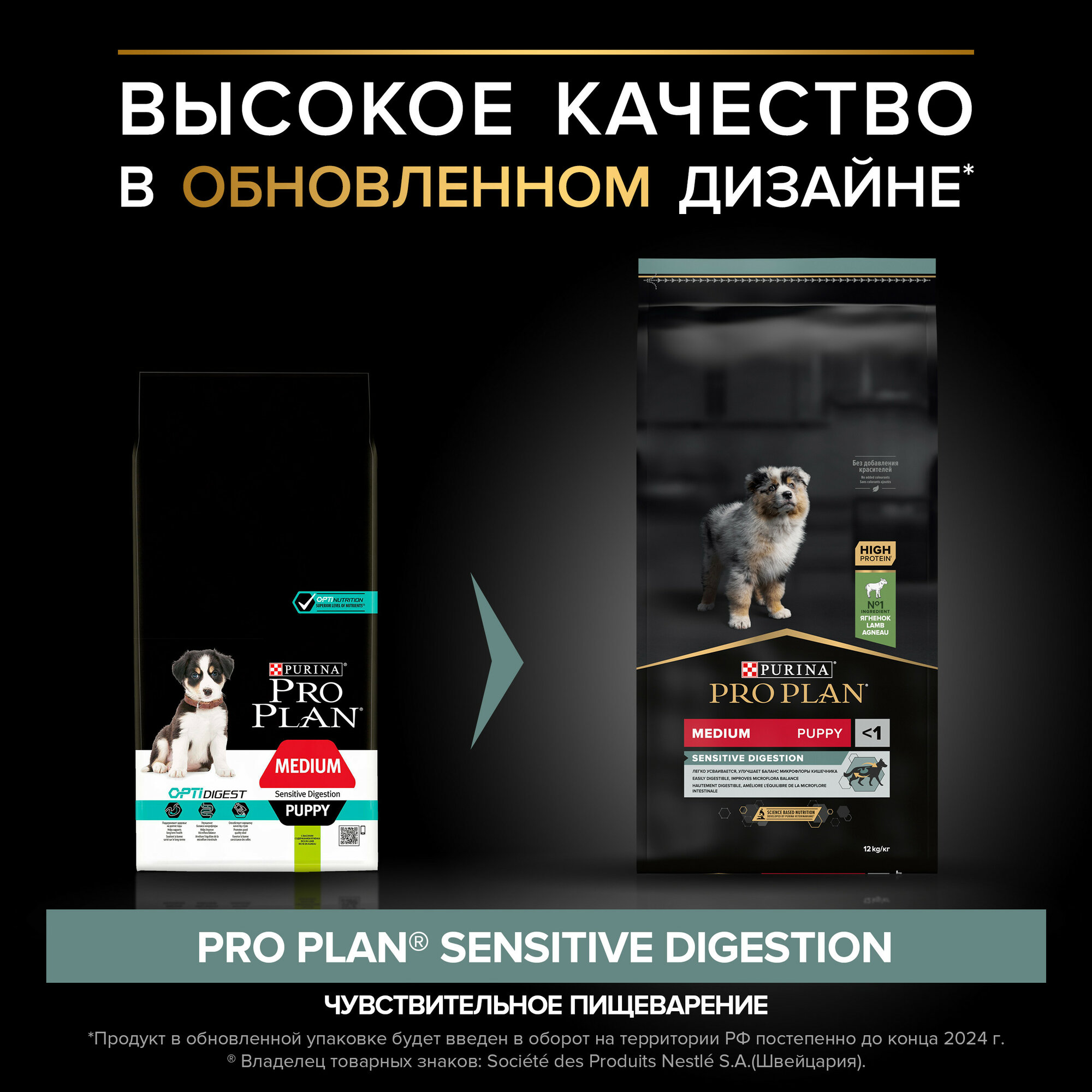 PRO PLAN Puppy Medium Sensitive Digestion сухой корм для щенков средних пород с чувствительным пищеварением с ягненком и рисом 12 кг