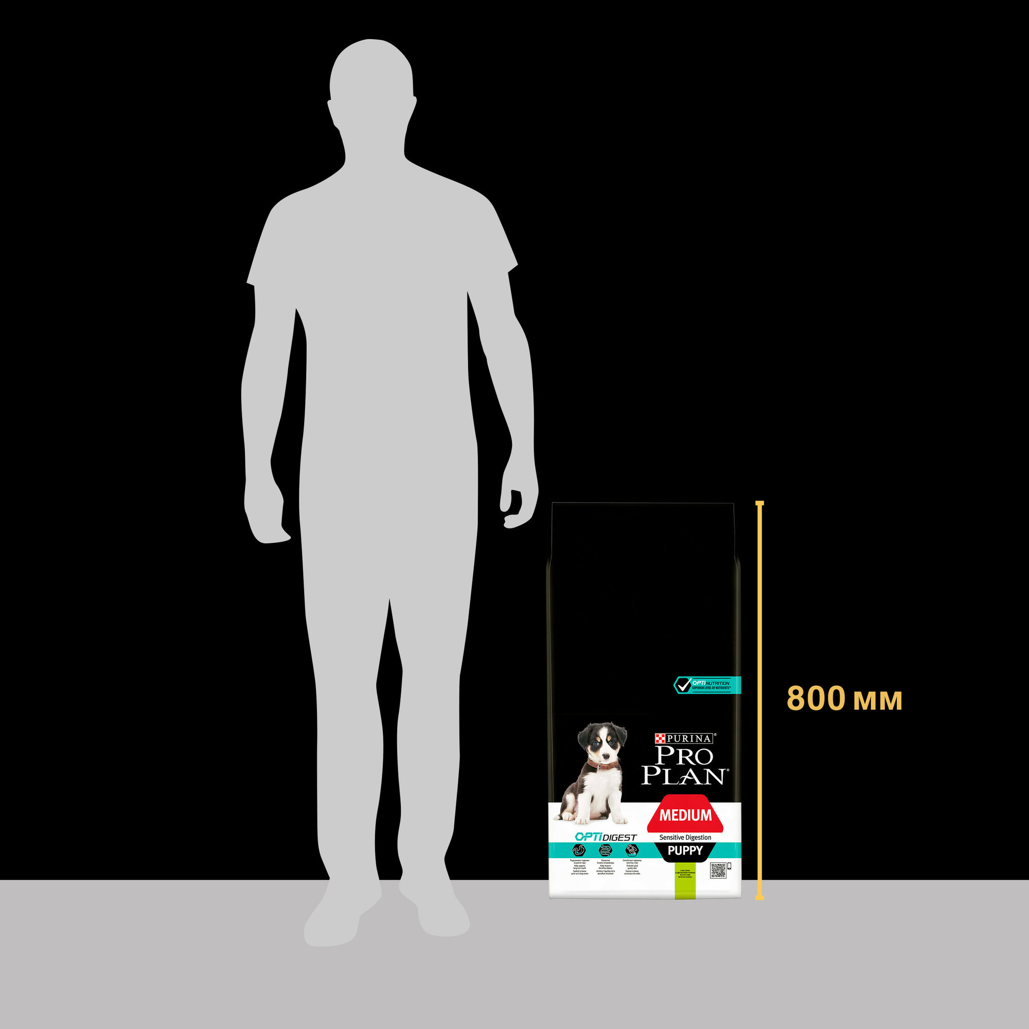 Сухой корм Pro Plan для щенков средних пород с чувствительным пищеварением с комплексом OPTIDIGEST® с ягненком и рисом, Пакет, 12 кг,Для щенков