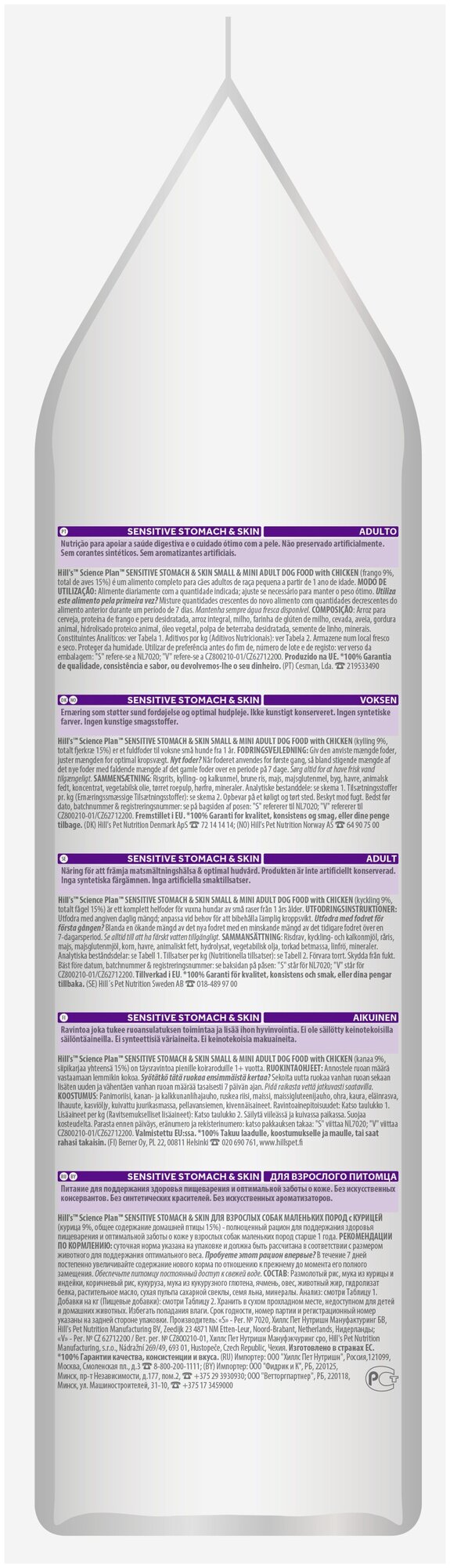 Hill's Science Plan Для взрослых собак малых и миниатюрных пород с чувствительным желудком/кожей, курица(Sensitive Small&Miniature), 3кг