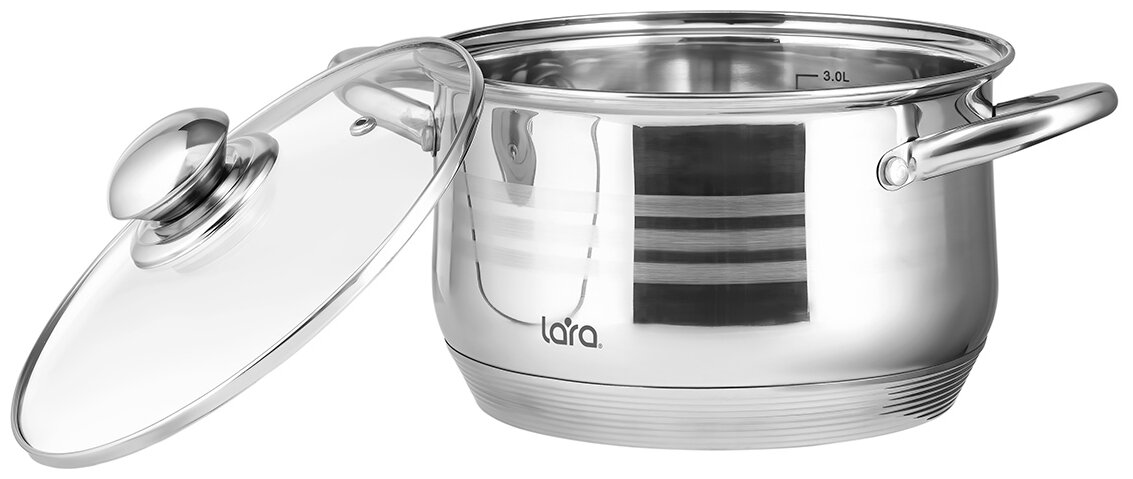 LARA Sonata LR02-100 кастрюли: 2.1/3.9/6.5л, стеклянные крышки