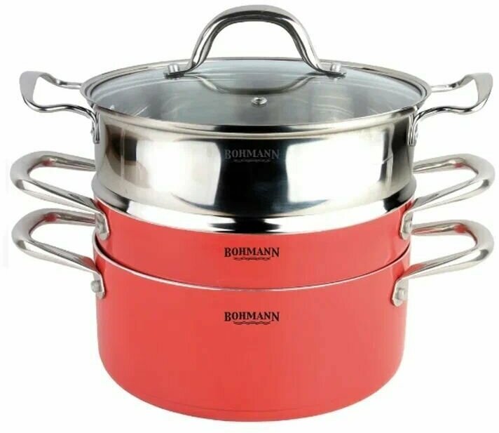 Лучшие цены. МультиНабор посуды, 4 предм: Кастрюля алюминиевая с внутренним антипригарным покрытием (дно подходит для индукции ) размер:22х10см (3,6л,); Сотейник Wok алюминиевый с внутренним антипригарным покрытием :22х6,5см(2,3л); Стальная пароварка:22х8,2см(3л); Стеклянная крышка с металлическим ободком и отверствием для выхода пара. Магазины в вашем городе.