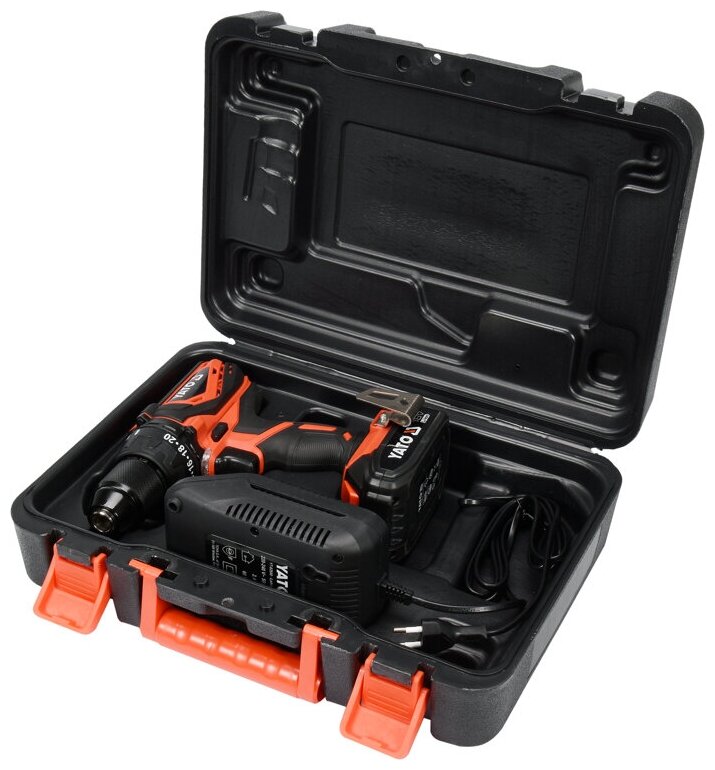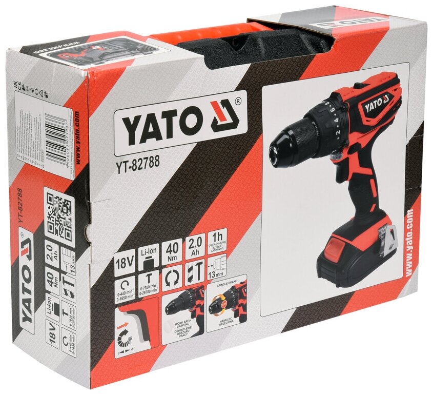 Дрель аккумуляторная 18В, ударная, 40Нм, реверс, подсветка, 2 скорости до 1650 об/мин, патрон до 13мм. В наборе с батареей 2Ач и ЗУ, в чемодане TOYA / YATO YT-82788