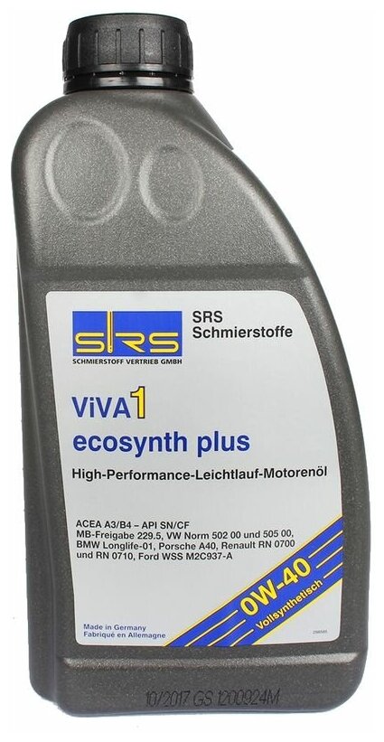 SRS 4033885000854 SRS Масо моторное VIVA 1 ecosynth 0W-40 (4 .) 11 840 ₽ Подробнее