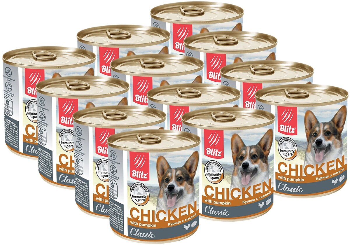 Корм для собак Blitz Classic Adult Dog влажный корм для взрослых собак, с курицей и тыквой в консервах - 750 г x 12 шт