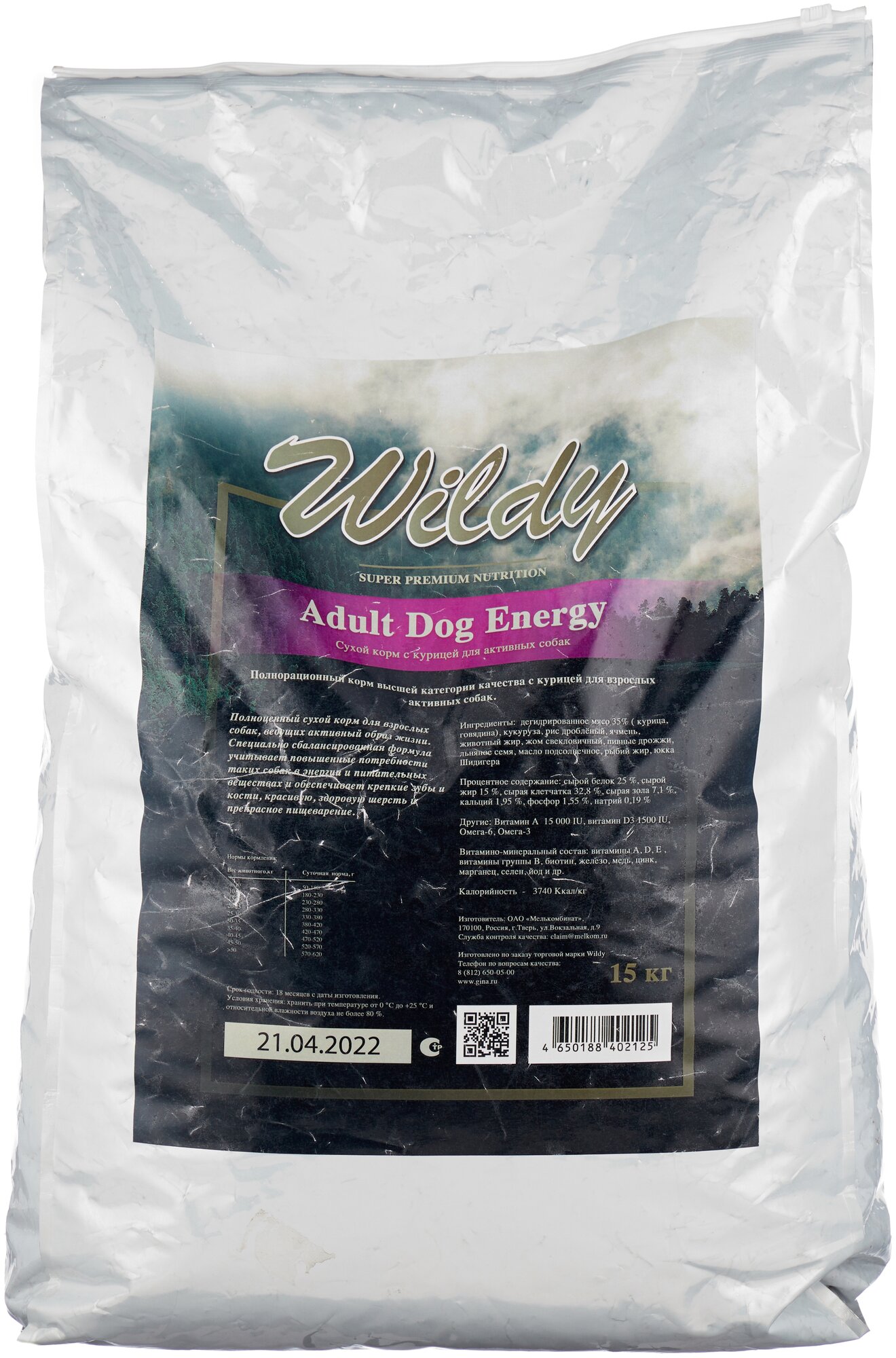 Корм для собак Сухой корм для активных взрослых собак всех пород Wildy Adult Dog Energy с курицей 15 кг.