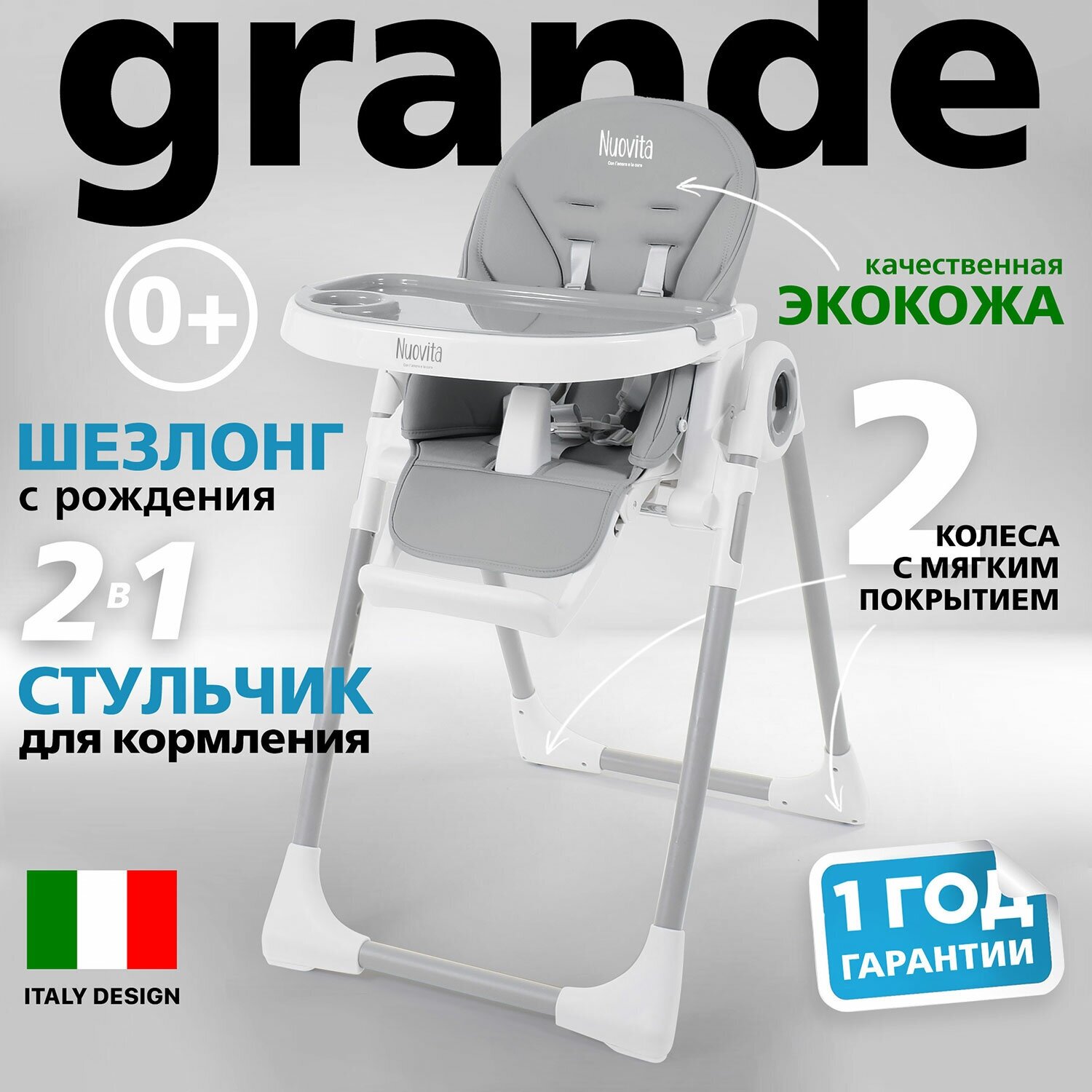 Стульчик для кормления Nuovita Grande (Grigio/Серый)