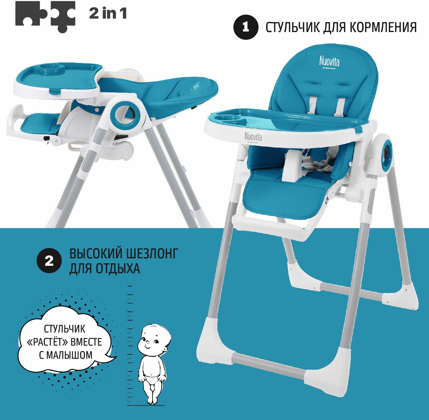 Лучшие цены. Стульчик для кормления Nuovita Grande поможет облегчить процесс кормления маленького гурмана, а процесс общения сделать увлекательнее. Особенность стульчика в том, что угол наклона спинки сиденья в 135 градусов позволяет использовать его как шезлонг. С помощью Nuovita Grande Вы приучите Вашего малыша к самостоятельности, а дополнительные возможности регулировки и качественные материалы позволят пользоваться стульчиком продолжительное время. Магазины в вашем городе.