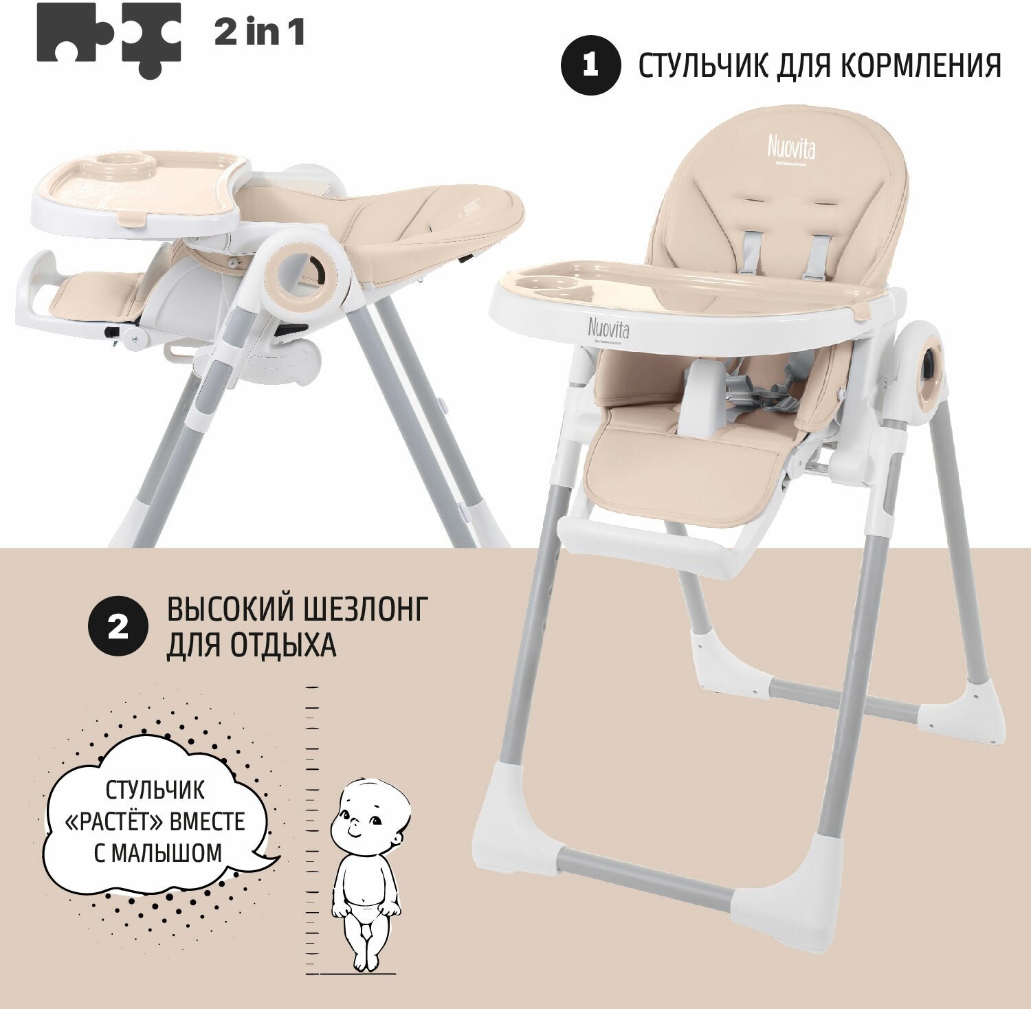Лучшие цены. Стульчик для кормления Nuovita Grande поможет облегчить процесс кормления маленького гурмана, а процесс общения сделать увлекательнее. Особенность стульчика в том, что угол наклона спинки сиденья в 135 градусов позволяет использовать его как шезлонг. С помощью Nuovita Grande Вы приучите Вашего малыша к самостоятельности, а дополнительные возможности регулировки и качественные материалы позволят пользоваться стульчиком продолжительное время. Магазины в вашем городе.