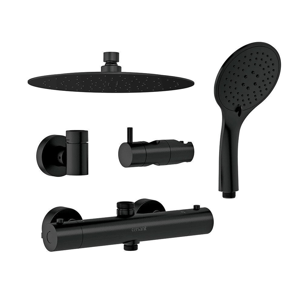 Душевые системы Душевая система Cersanit Brasco Black с верхним душем d245 мм с лейкой d120 мм с термостатом черная (63112)