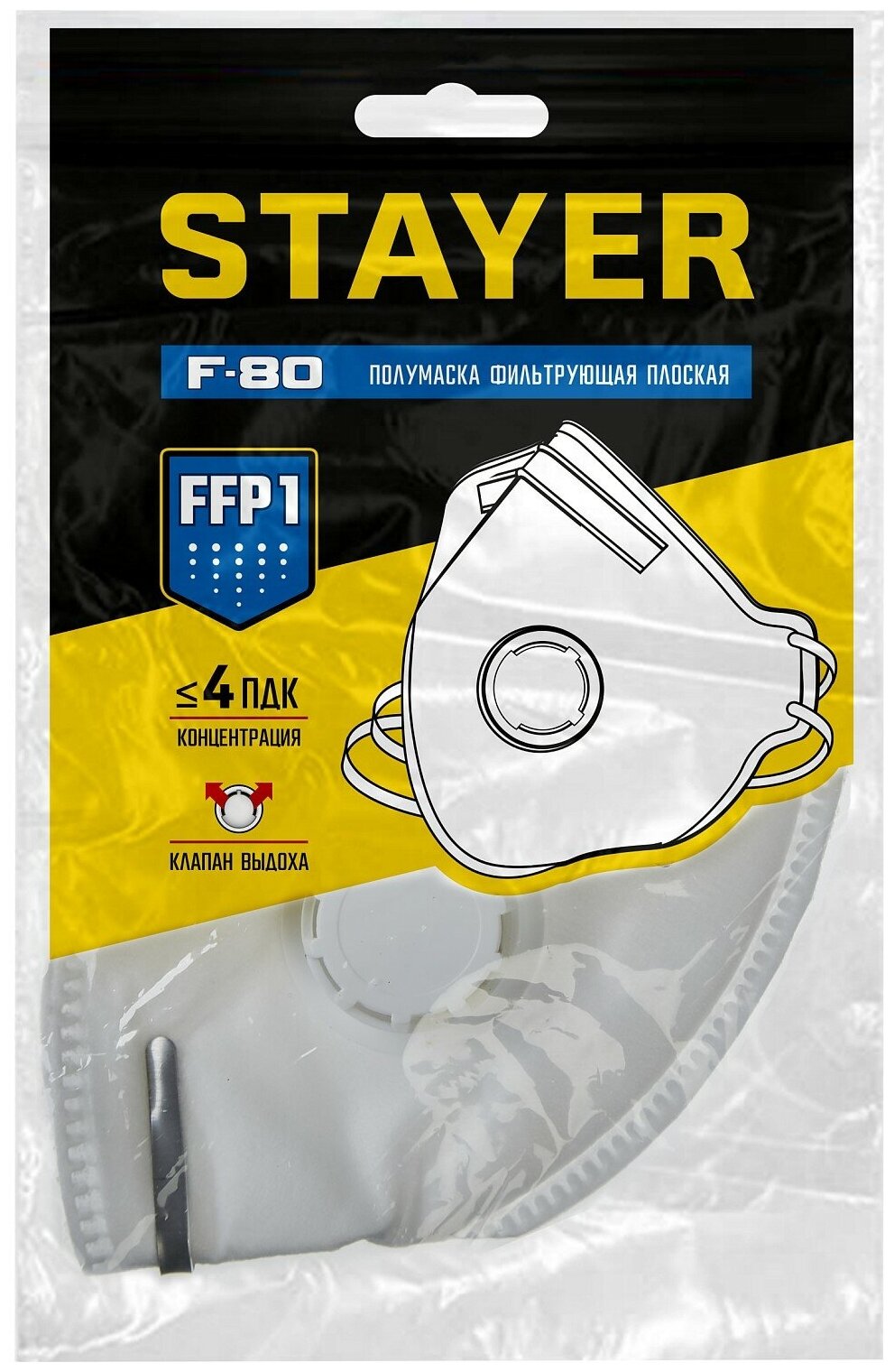 Плоская полумаска фильтрующая STAYER FV-80 FFP1 с клапаном _z01 (11113_z01)