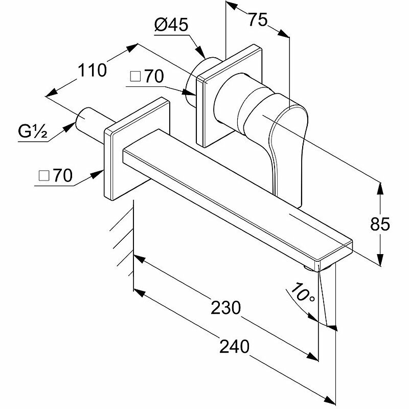 KLUDI ZENTA SL настенный смеситель для умывальника,внешняя монтажная часть, отражатель из 2 частей, длина излива, 230 мм, арт. 482450565
