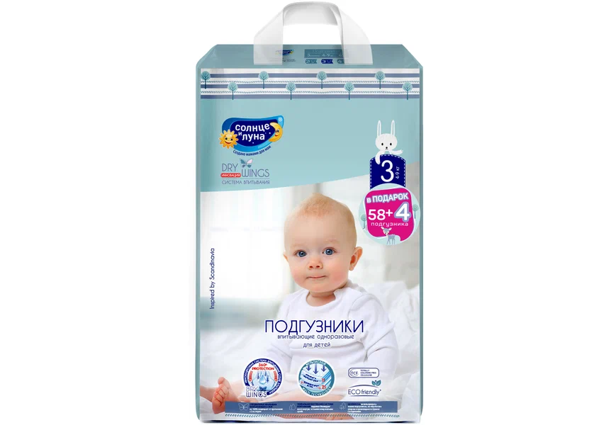 Подгузники Солнце и Луна Dry wings mega-pack 3/M (4-9 кг) 58+4 шт.
