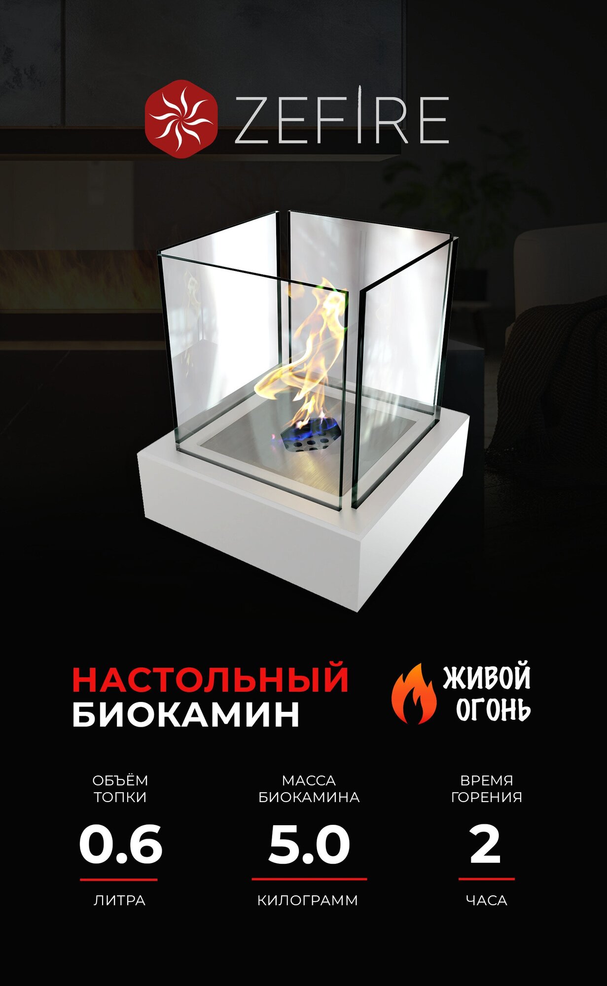 Биокамин Биокамин настольный ZeFire Quant metall белый для дома и квартиры