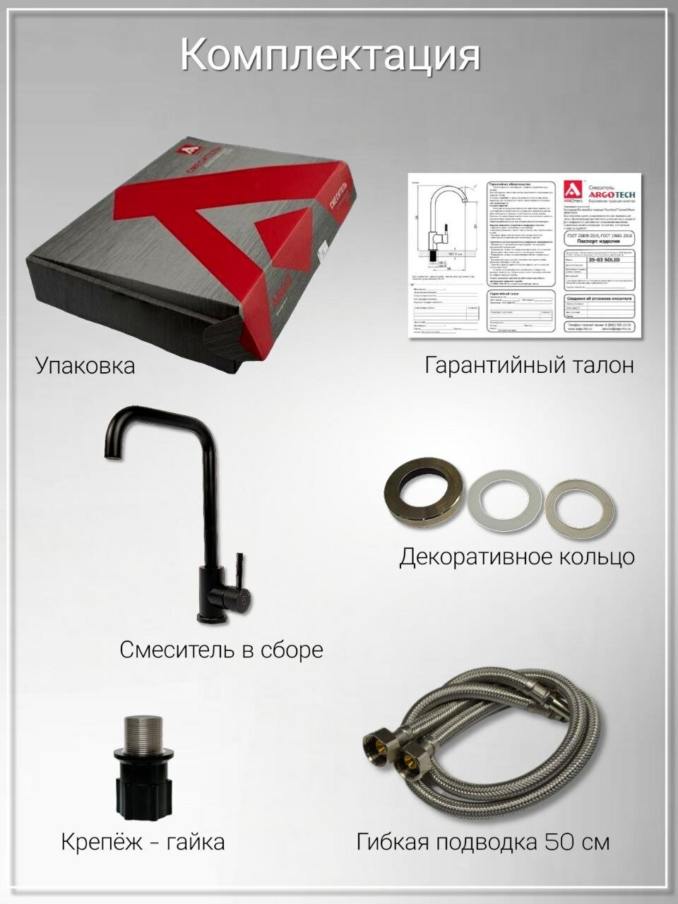 Смесители Смеситель для кухни набортный, SOLID чёрный, Г-образный излив, однорычажный, d-35, нержавеющая сталь