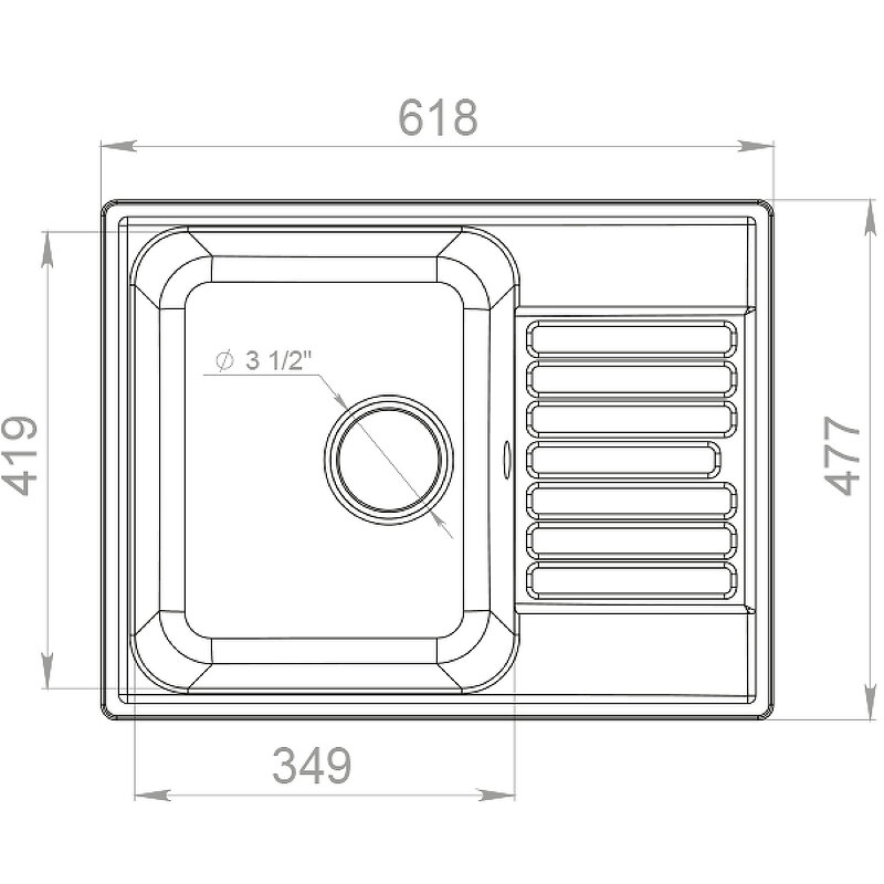 Врезная кухонная мойка 61.8 см, GranFest Quarz GF-Z13, серый