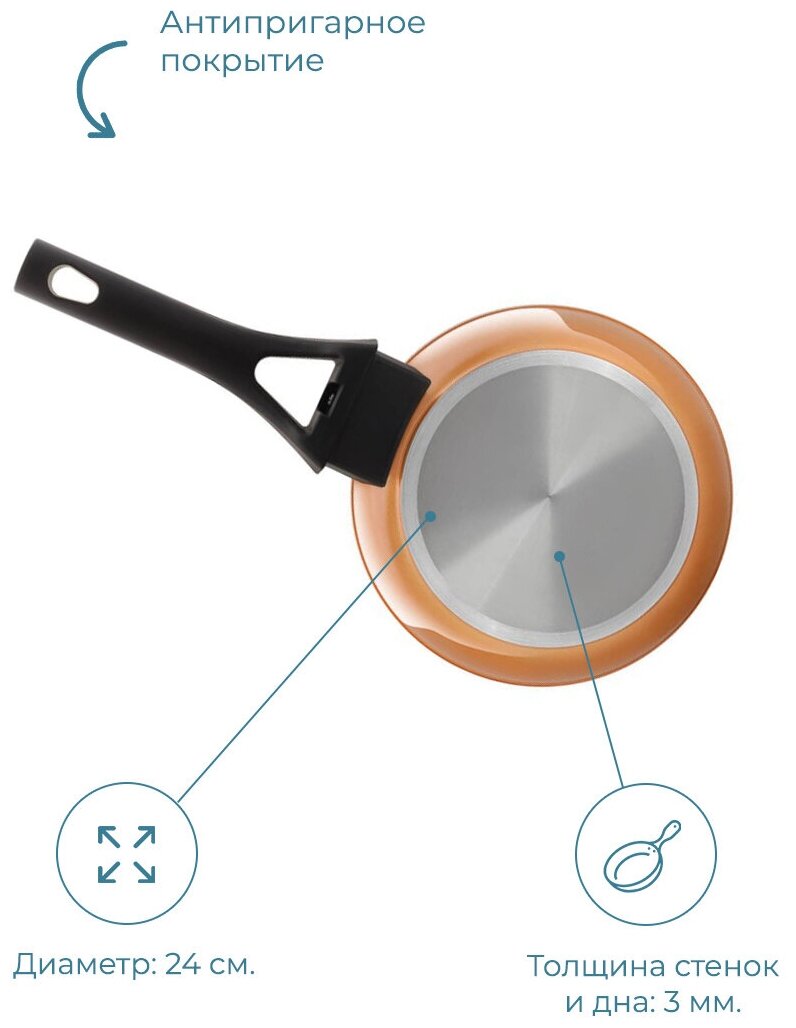 Сковородка Сковорода с антипригарным покрытием Guffman "Venus Copper" индукционная, алюминиевая, 24 см.
